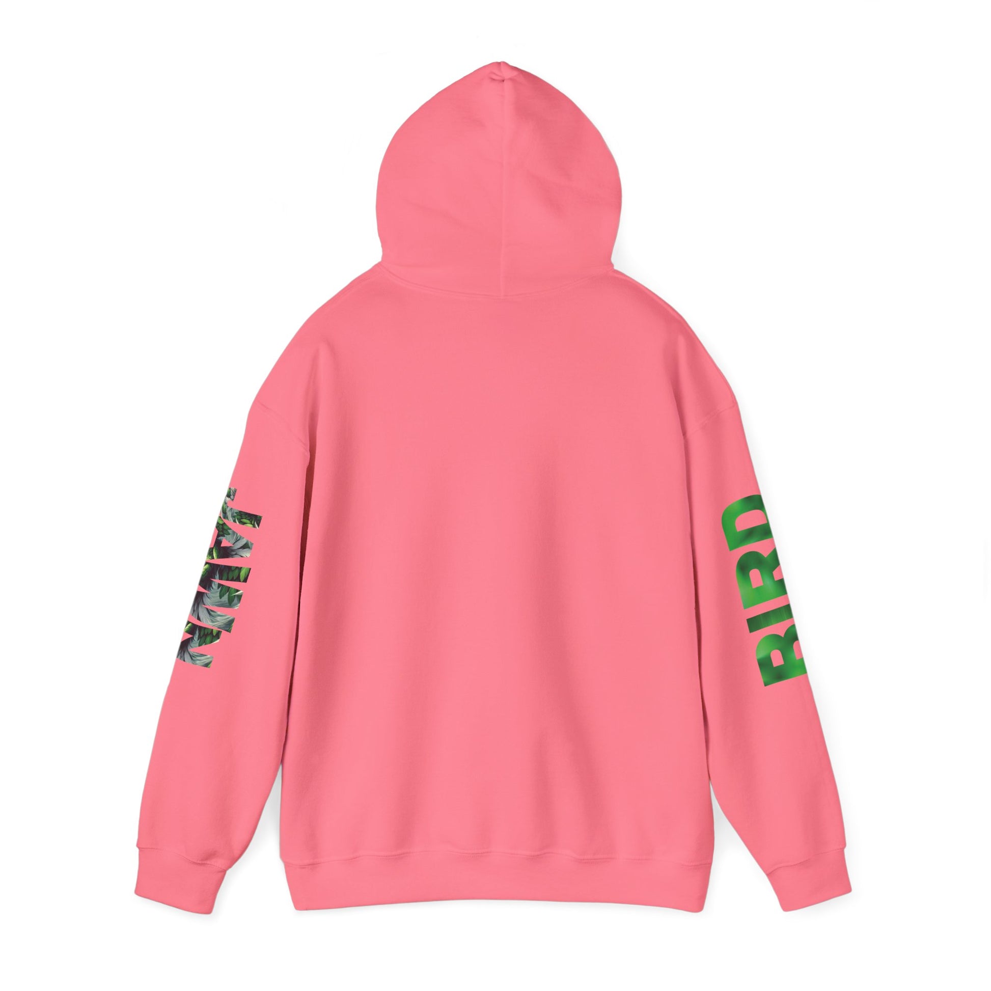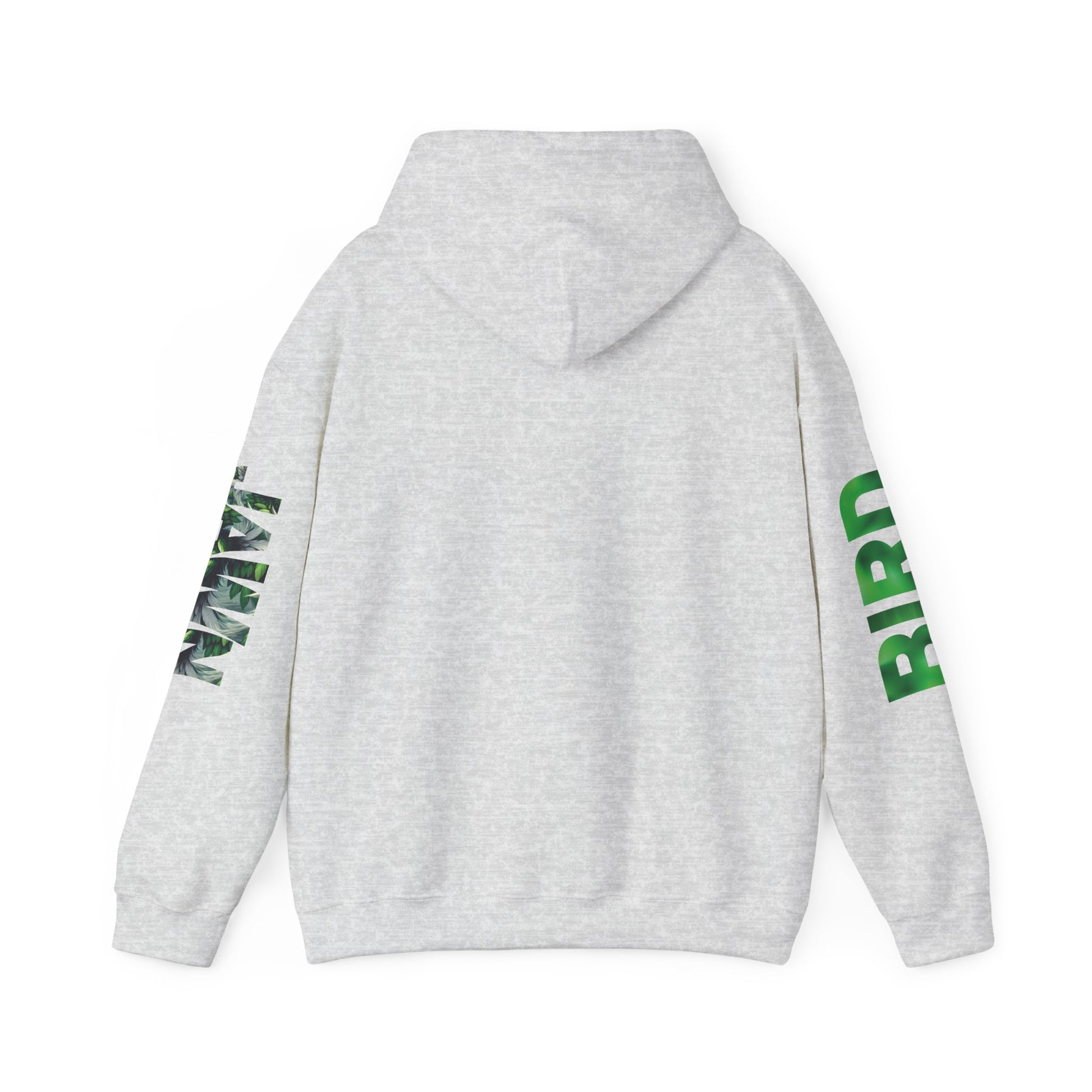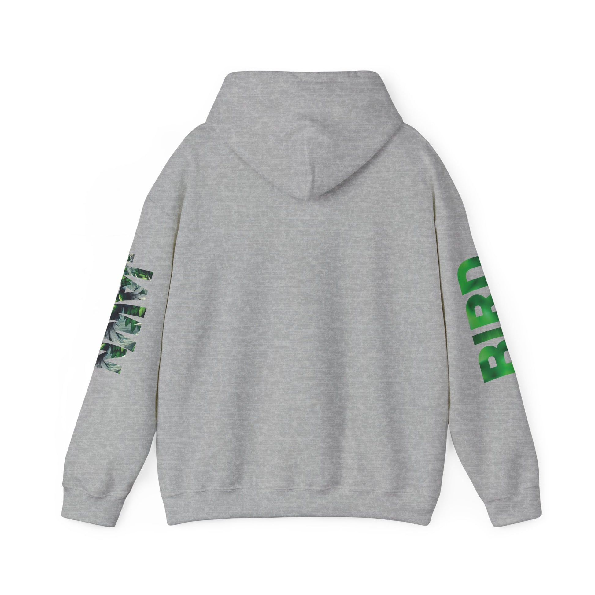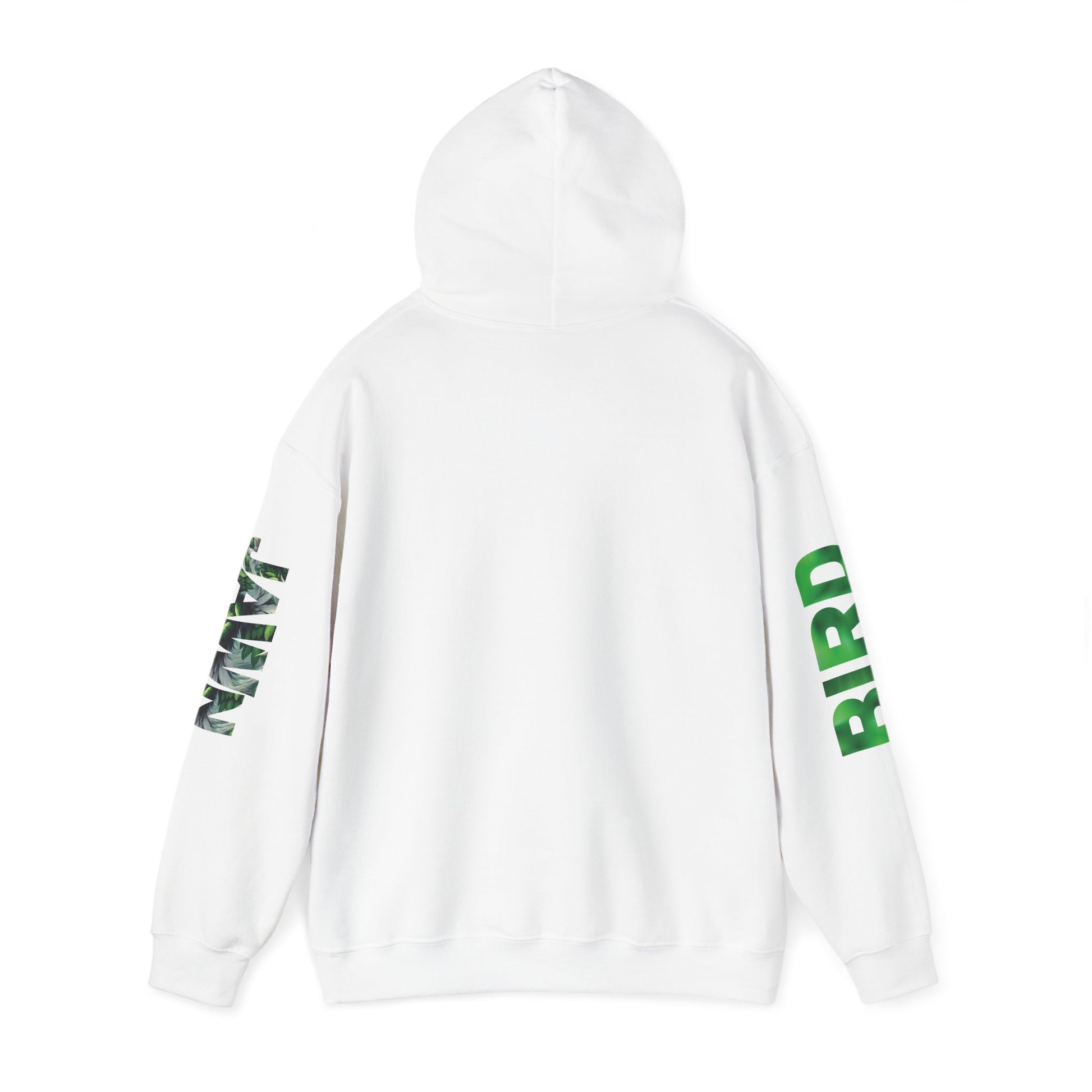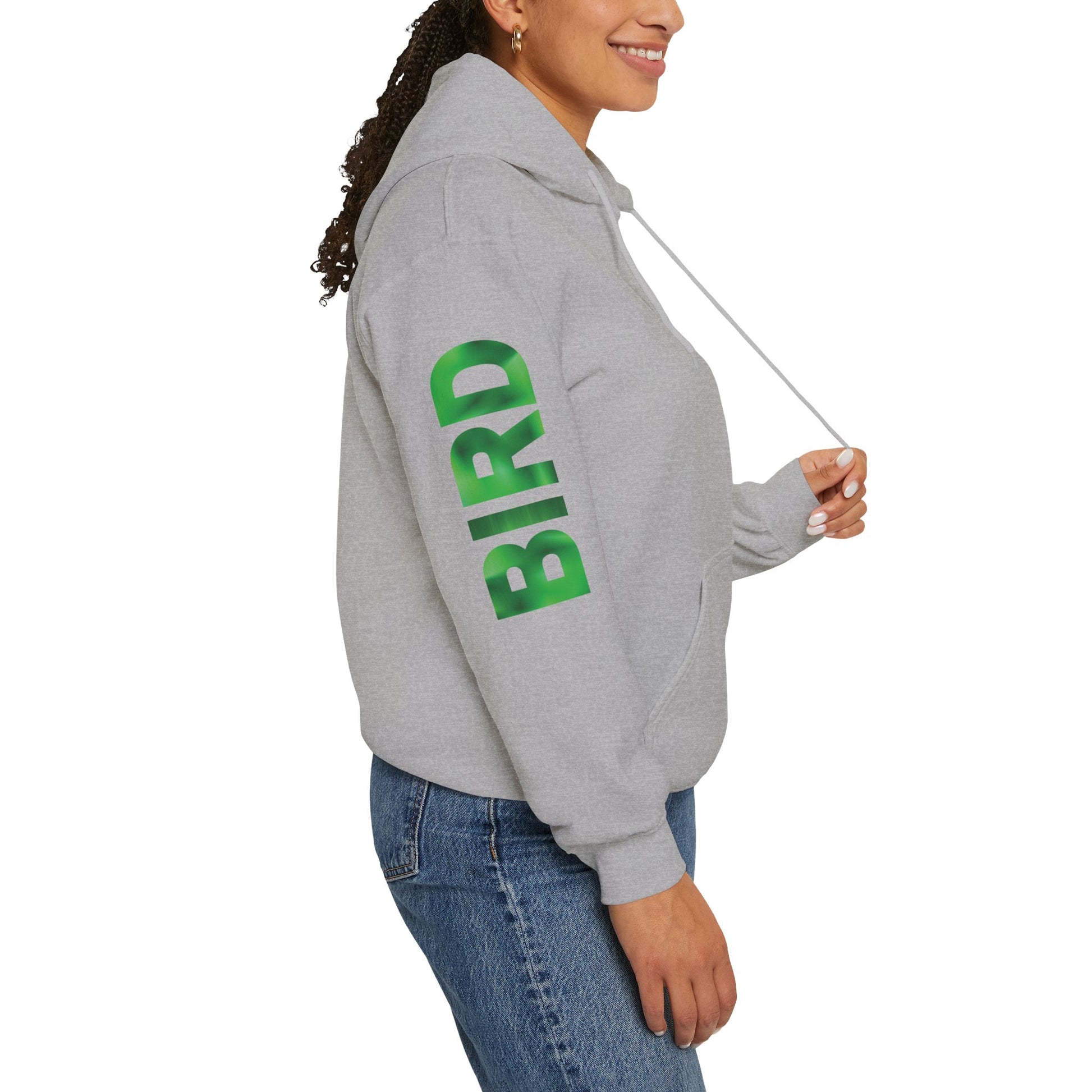 The hoodie features sleeve prints and a classic fit with a kangaroo pouch pocket and adjustable drawstring hood. Made with a cozy blend of 50% cotton and 50% polyester.