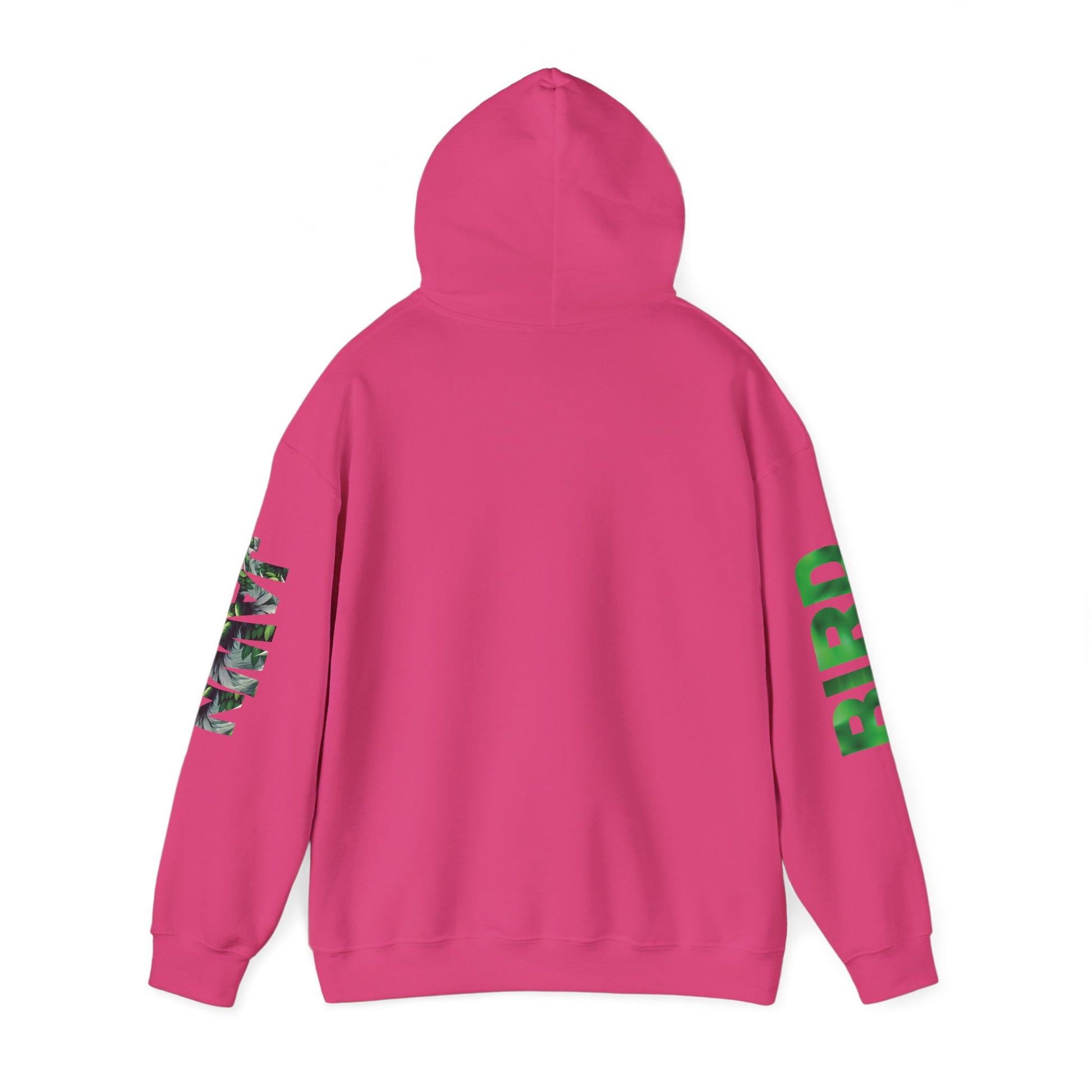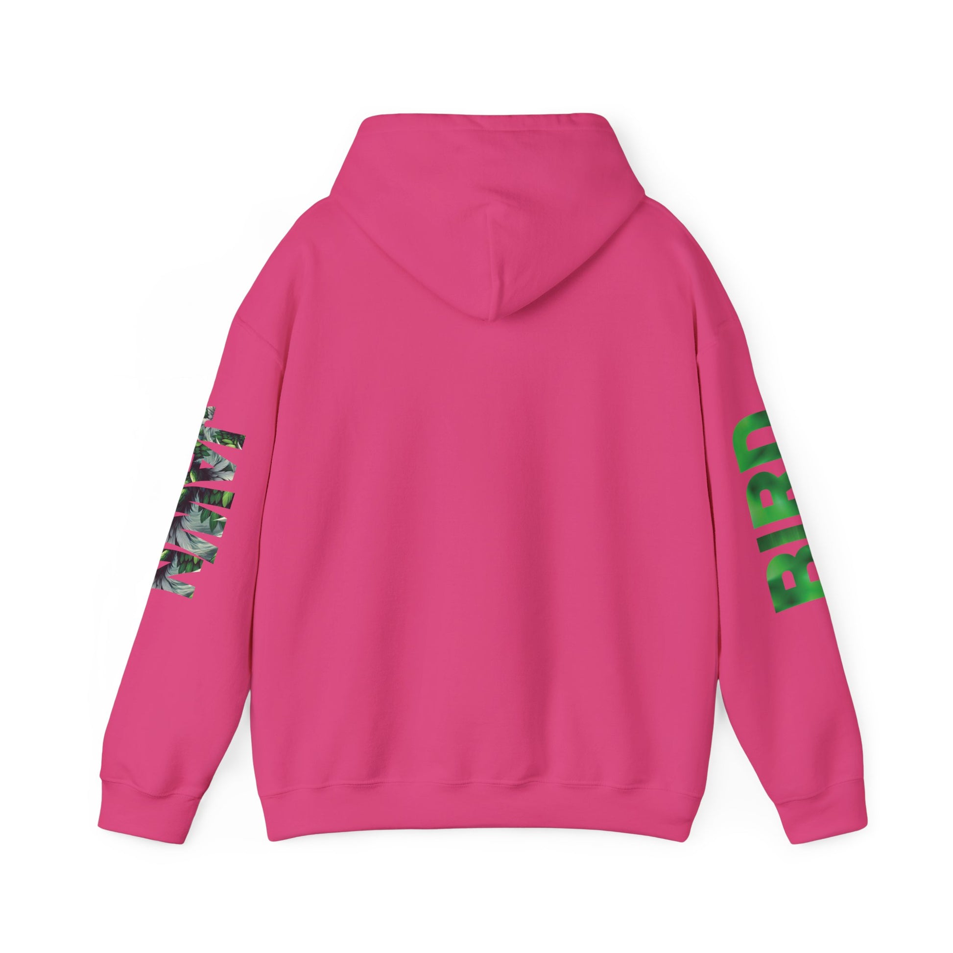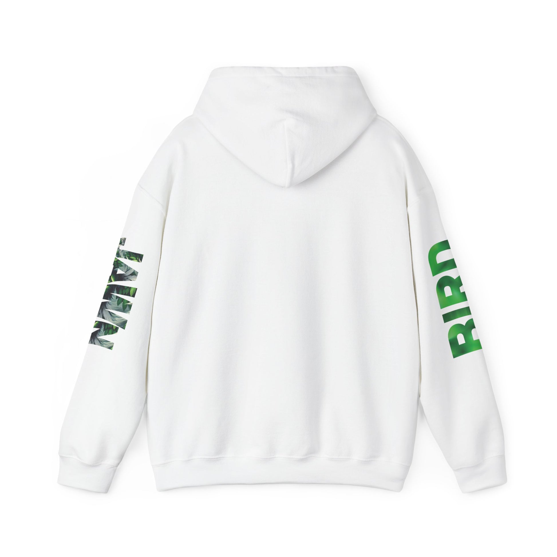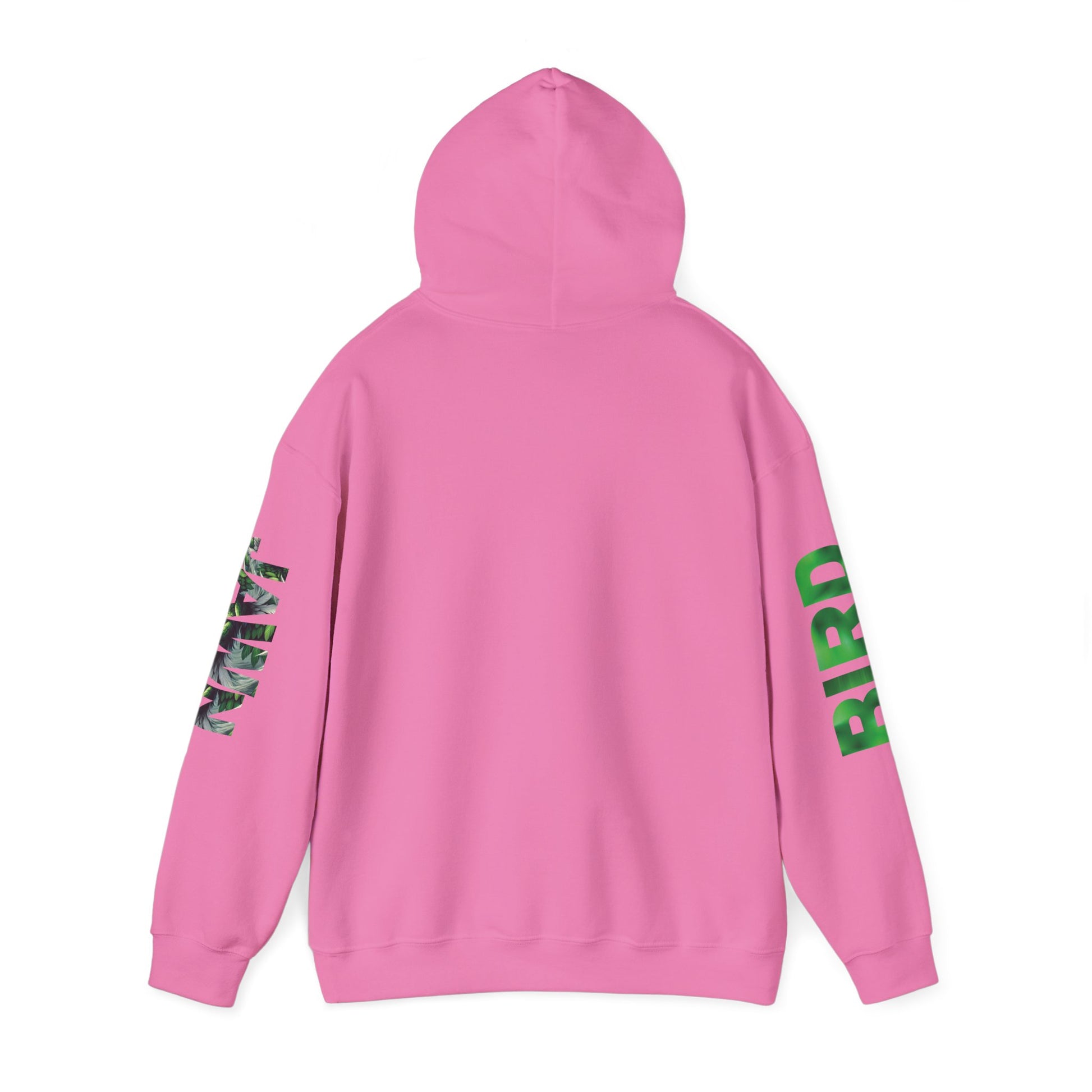 The hoodie features sleeve prints and a classic fit with a kangaroo pouch pocket and adjustable drawstring hood. Made with a cozy blend of 50% cotton and 50% polyester.
