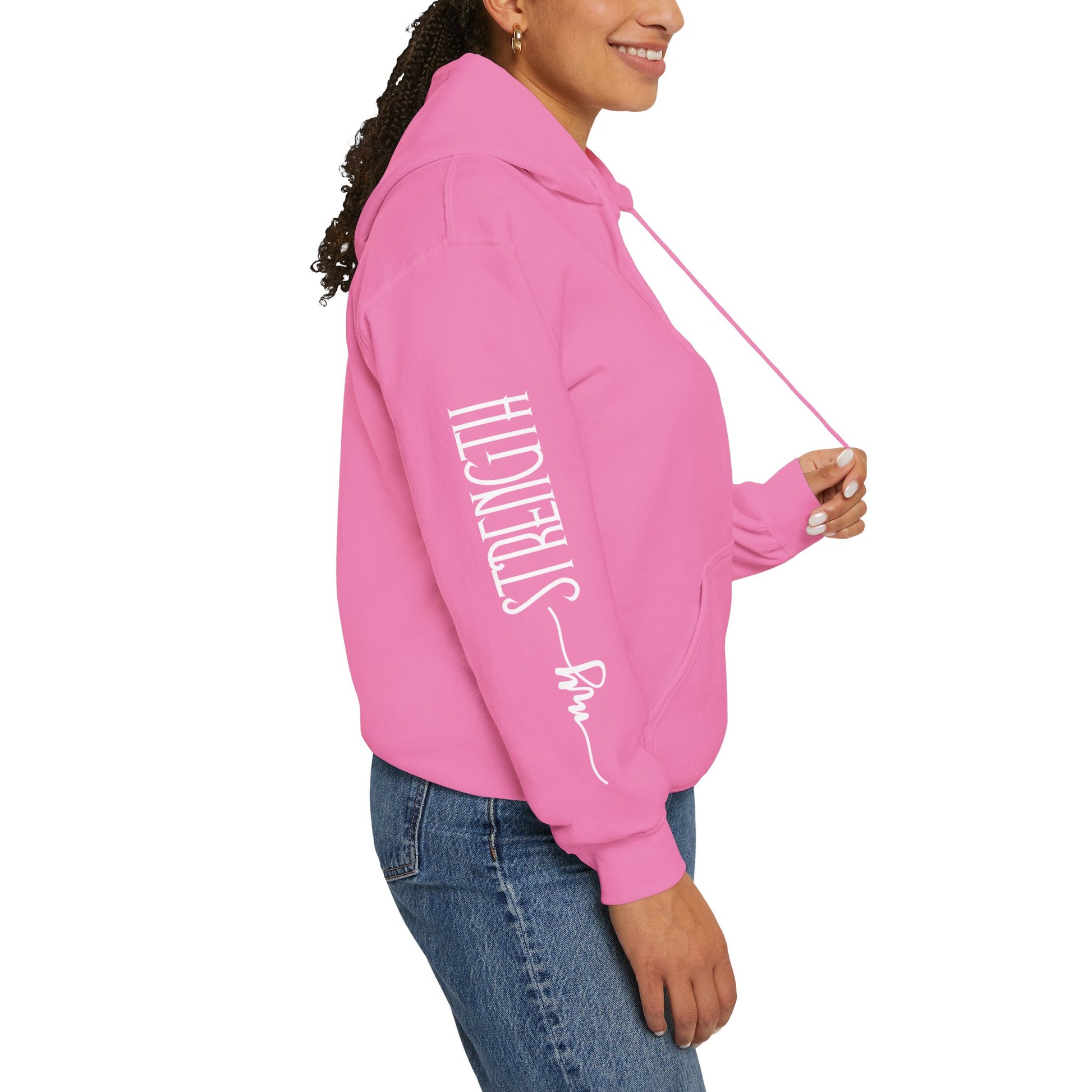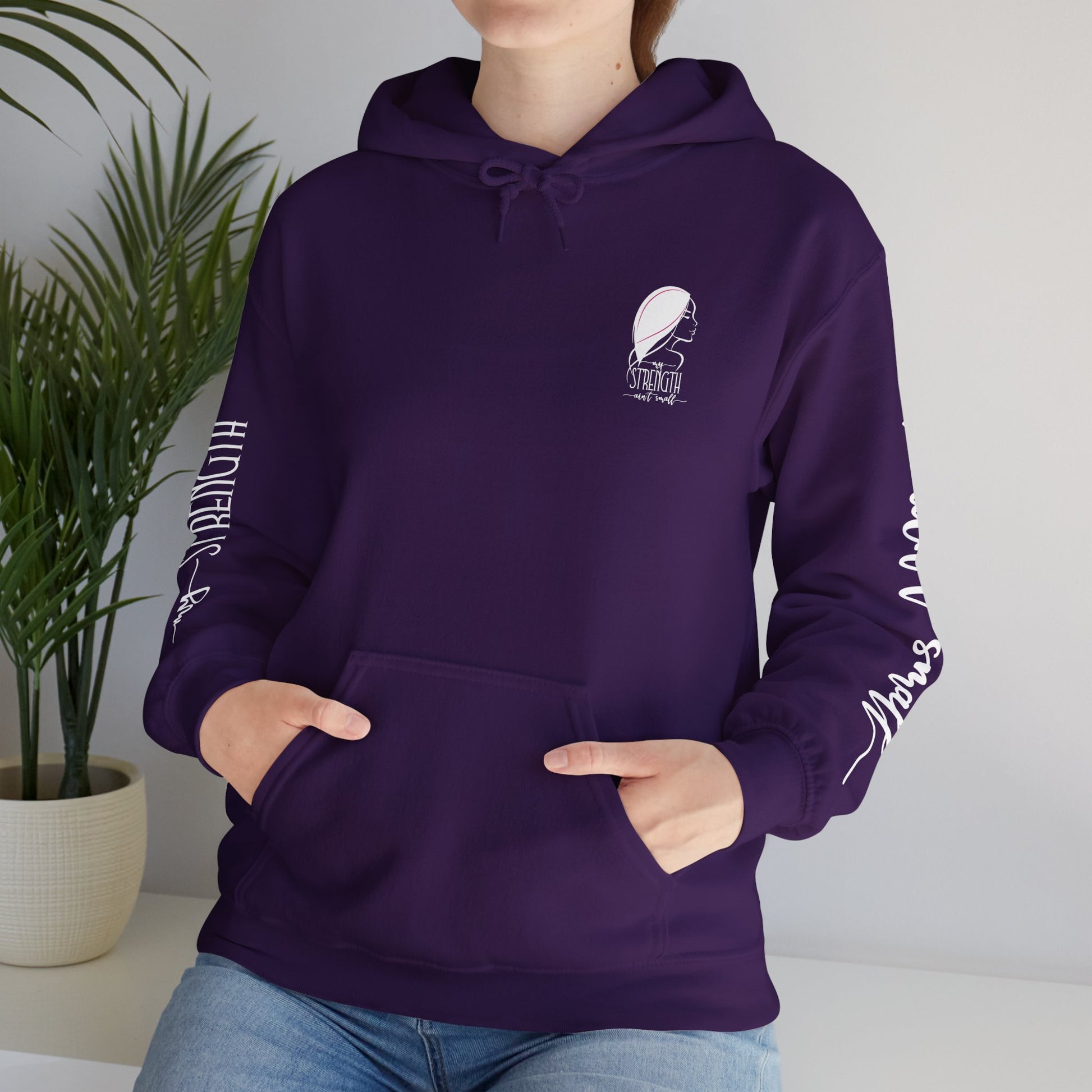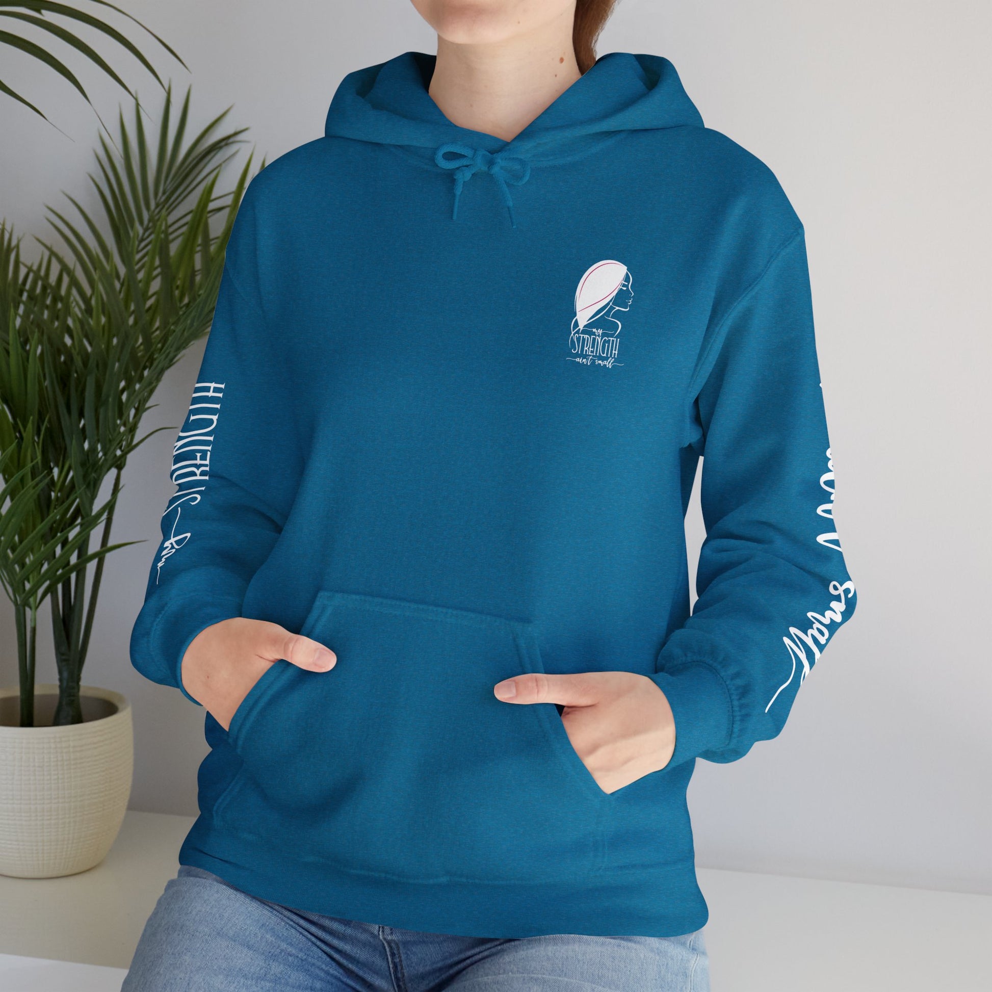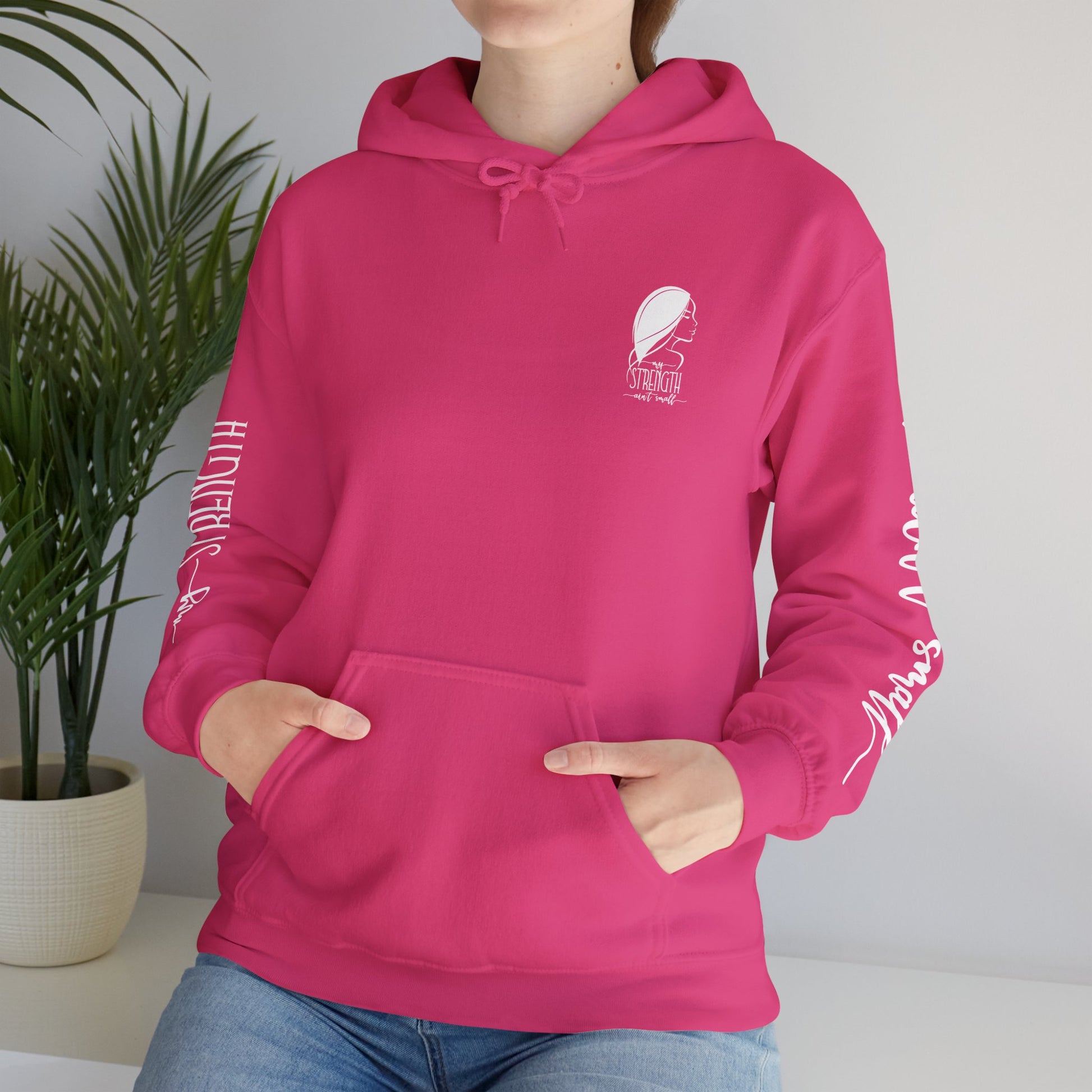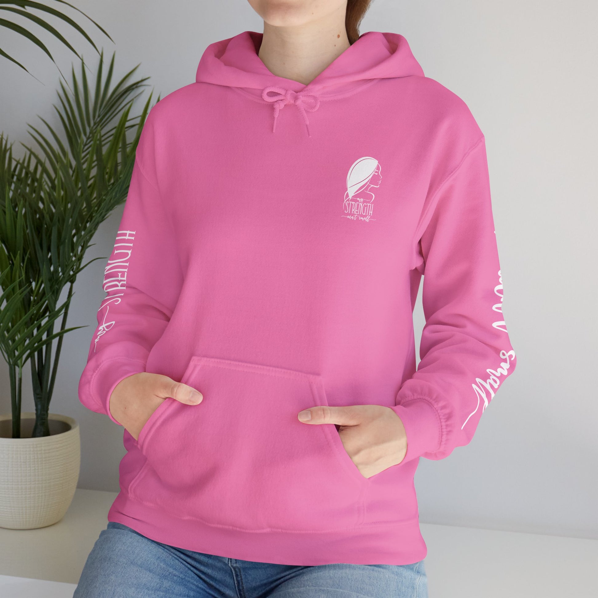My Strength Ain’t Small Sleeve White Empowering Women’s Hoodie - For Classy & Resilient Women