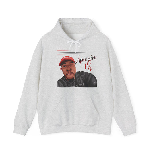 The hoodie features sleeve prints and a classic fit with a kangaroo pouch pocket and adjustable drawstring hood. Made with a cozy blend of 50% cotton and 50% polyester.